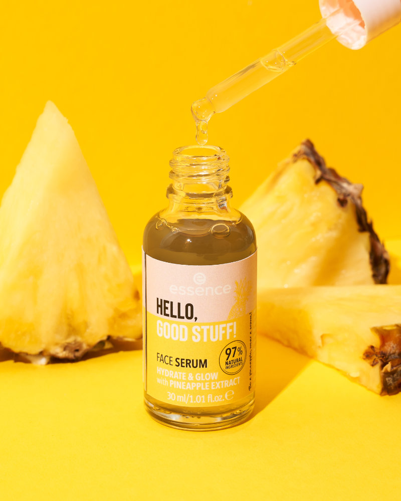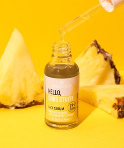 Suero multi beneficios. Así, el principal beneficio es la intensa hidratación que recibirá tu piel. ¡Incluso las pieles más secas se mantendrán hidratadas! Además, este sérum aporta un brillo muy natural a la piel dejándote con un cutis radiante. Por otro lado, este producto contiene una fragancia afrutada ligera, fresca y muy agradable. Además, su composición está enriquecida con aproximadamente un 97% de productos naturales. Como plus, está enriquecido principalmente con Extracto de Piña. Gracias a este ingrediente, la piel queda más hidratada, tersa y calmada. Además, este ingrediente clave contiene propiedades antioxidantes, ideales para cualquier tipo de piel. En definitiva, si quieres tener un producto que combine varios beneficios, este sérum facial es imprescindible para ti. Incluso cualquier look de maquillaje obtendrá un brillo nuevo y más radiante.