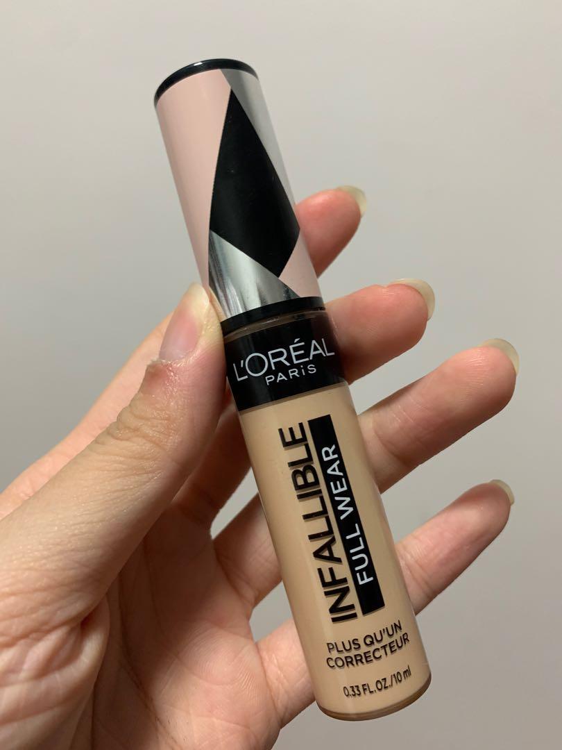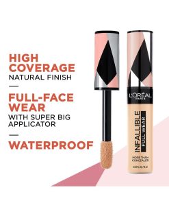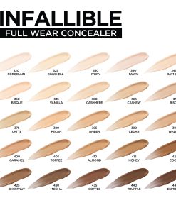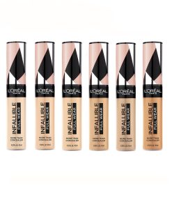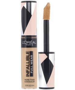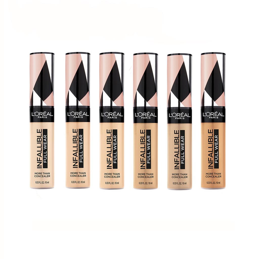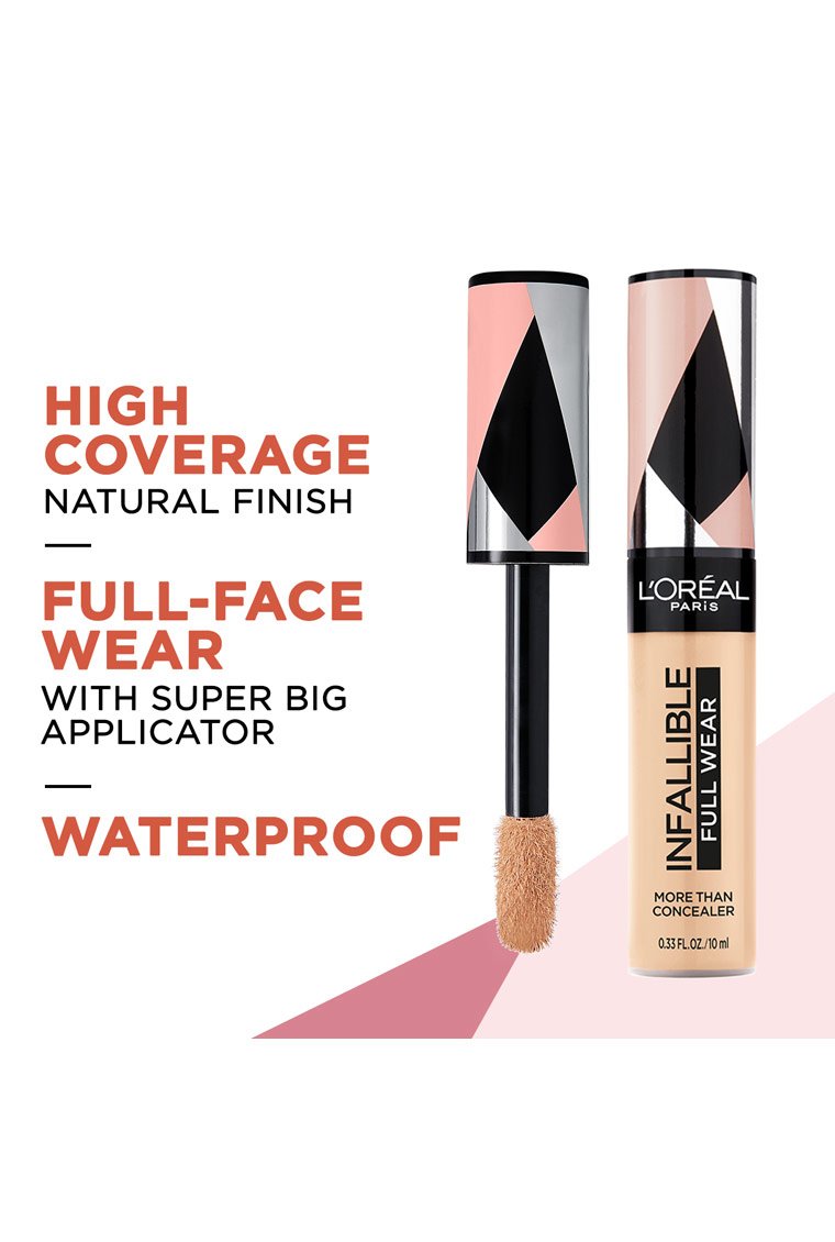 Hasta 24 horas. El nuevo Full Wear Concealer es nuestra fórmula de mayor cobertura en nuestra gama de colores de corrector más amplia. L’Oreal Paris Full Wear Concealer ofrece una cobertura completa con un acabado mate impecable. Esta fórmula multiuso oculta las imperfecciones al tiempo que también como un producto de contorno / iluminador . Da forma a tu rostro yendo 1-2 tonos más profundo al contorno y 1-2 tonos más claros para resaltar y aclarar. Nuestro aplicador extra grande brinda una cobertura máxima en un golpe para cubrir círculos debajo de los ojos, cicatrices de acné y decoloración.