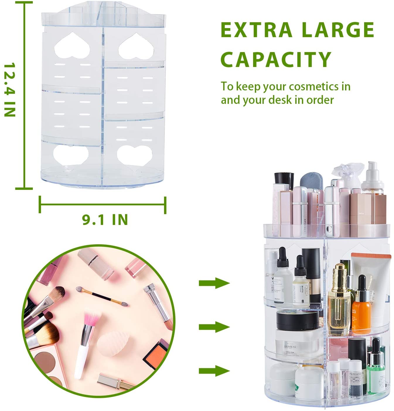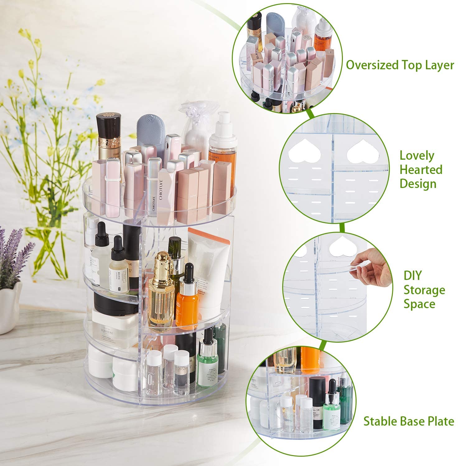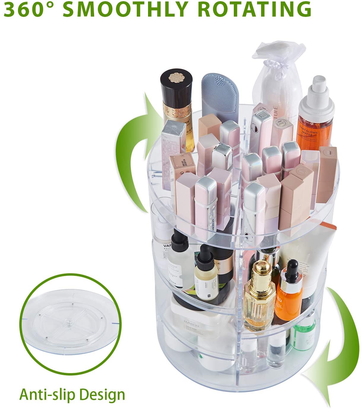 Rotación de 360 grados, fácil acceso: nuestro organizador de cosméticos tiene una pantalla clara y rotación de 360 grados. Puedes encontrar fácilmente el maquillaje o accesorio que necesitas, todo sin crear un desastre