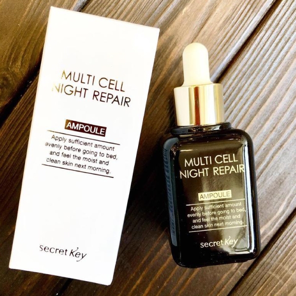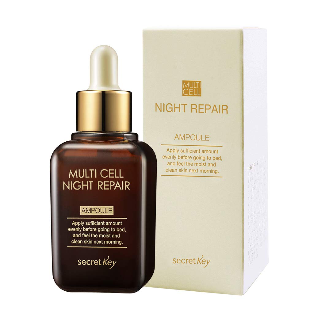 - Secret Key Multi Cell Night Repair Ampoule contiene 3 células madre botánicas para nutrir e hidratar intensamente durante la noche para una piel sana, limpia e hidratada.