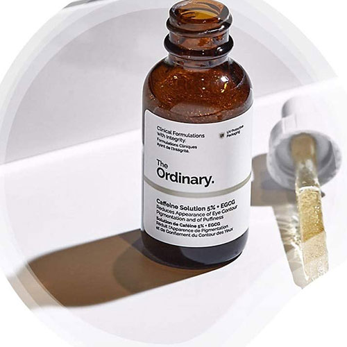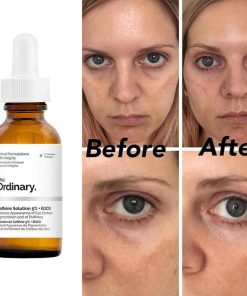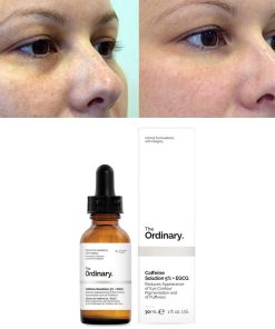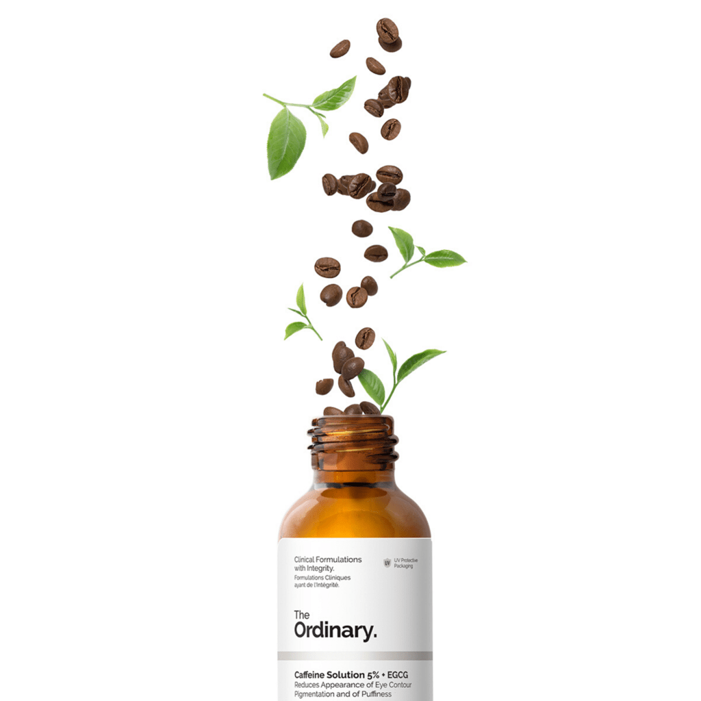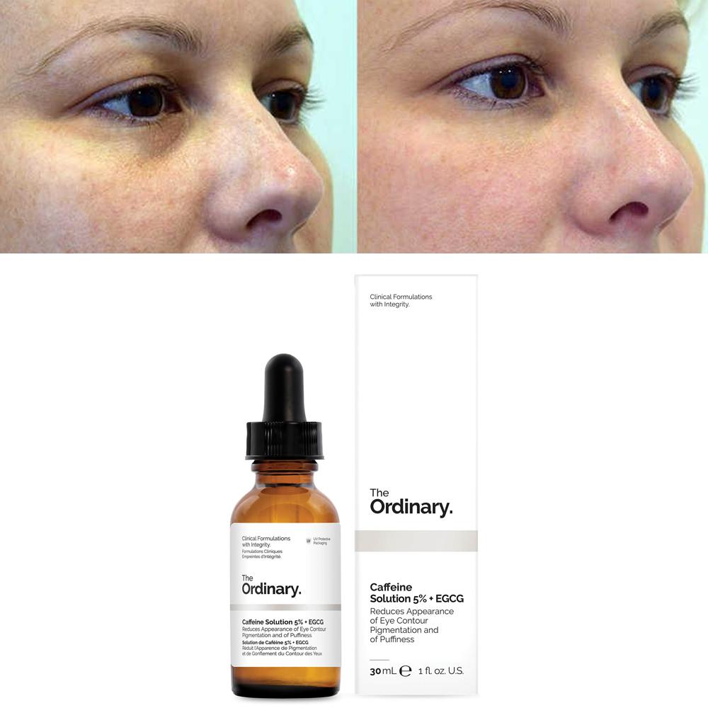Esta fórmula ligera contiene una concentración extremadamente alta de cafeína del cinco por ciento, complementada con epigalocatequina gallatil glucósido altamente purificado (EGCG) de hojas de té verde. Los estudios han demostrado que el uso tópico de cafeína y EGCG puede ayudar a reducir la apariencia de hinchazón y ojeras alrededor del contorno de los ojos.